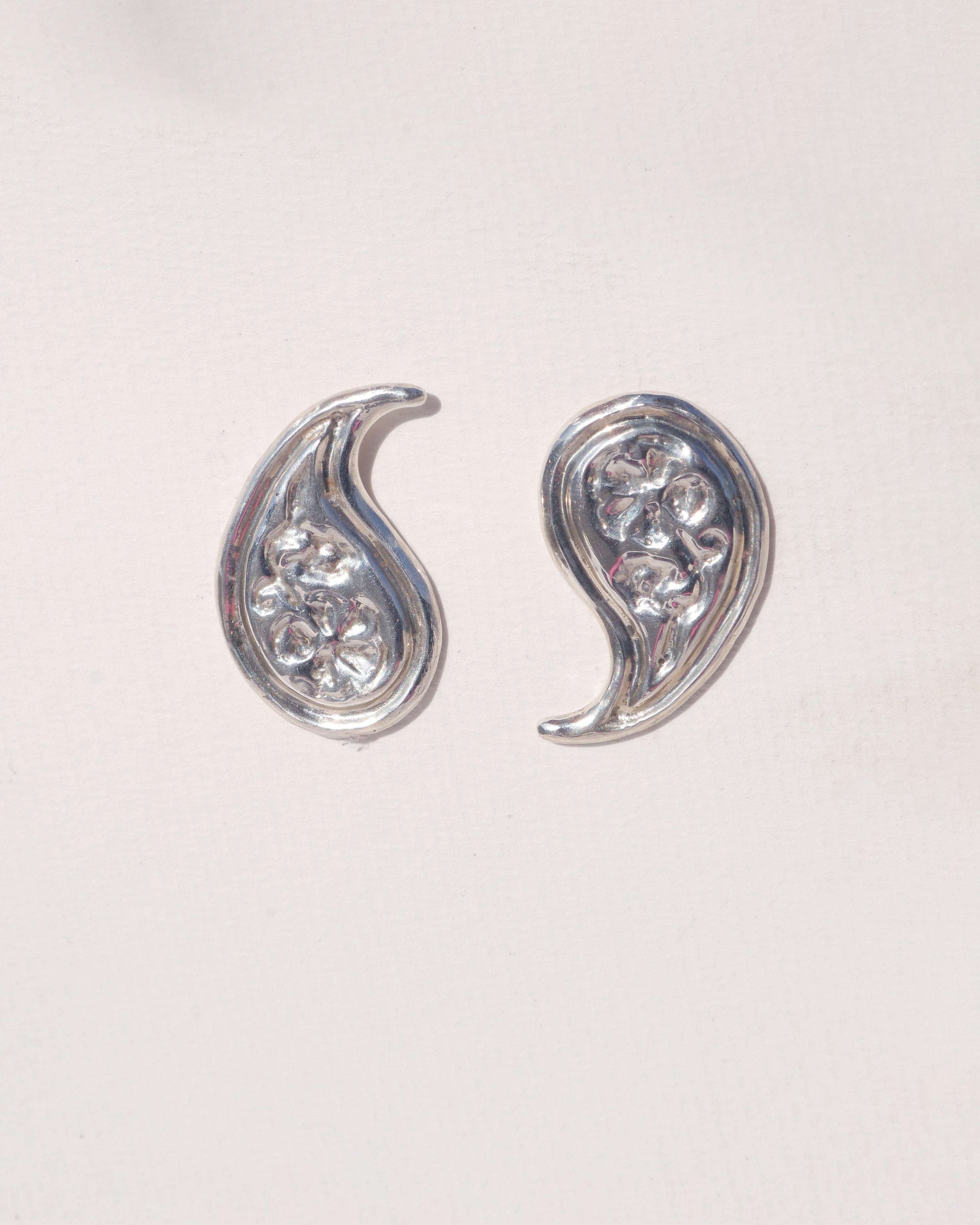 Asymmetrical paisley earrings that add a gorgeous pop of silver to any look.