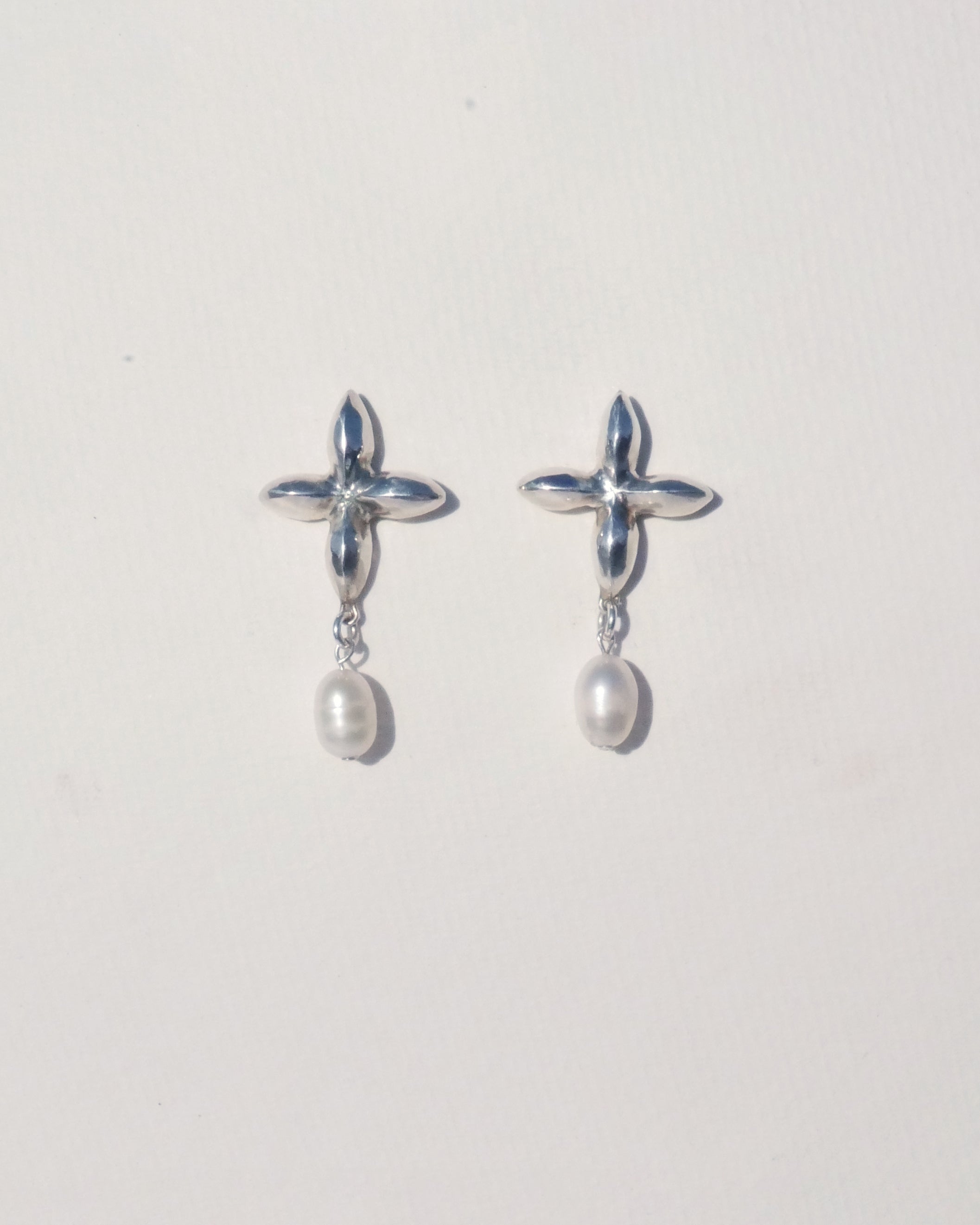 Hand cast sterling silver with a delicate pearl drop to frame your face.